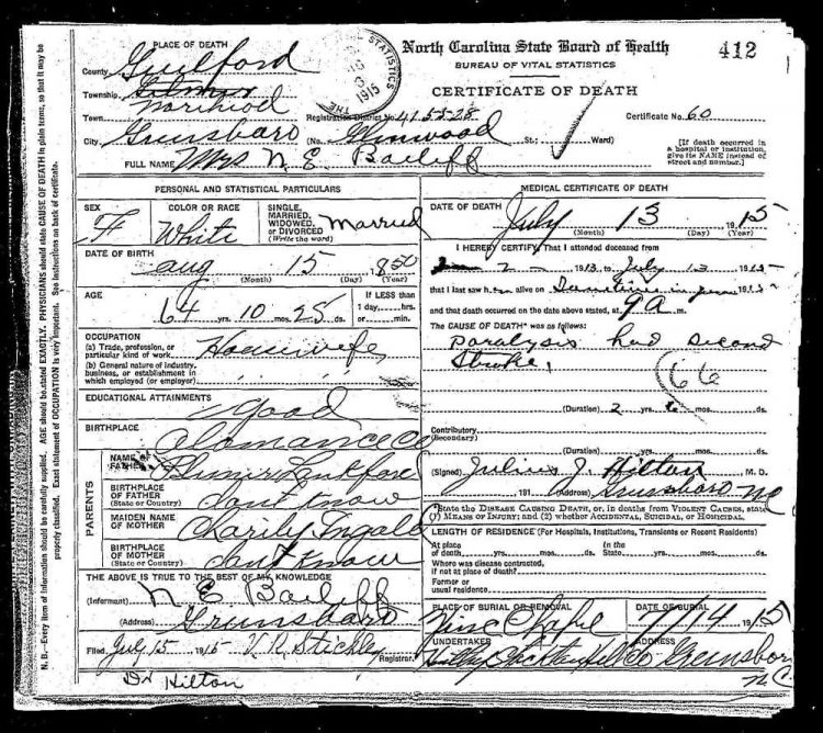 1915 Sarah Lankford Bailiff
