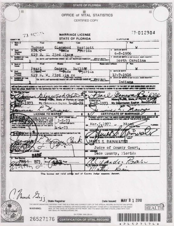> 1973 Pearl Bailiff and Thomas Westcott > 1 Image