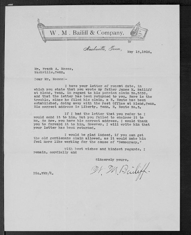 > 1903 James M Bailiff pension file > 40 Images