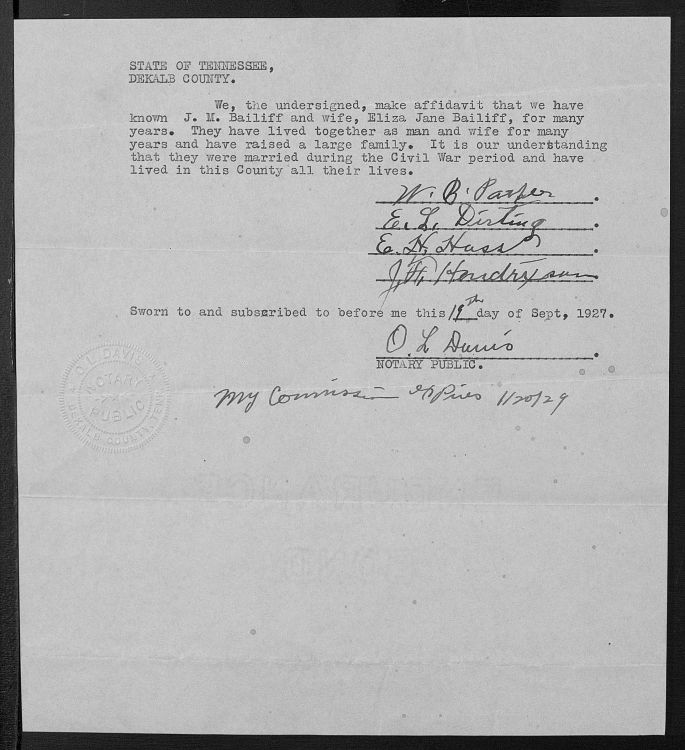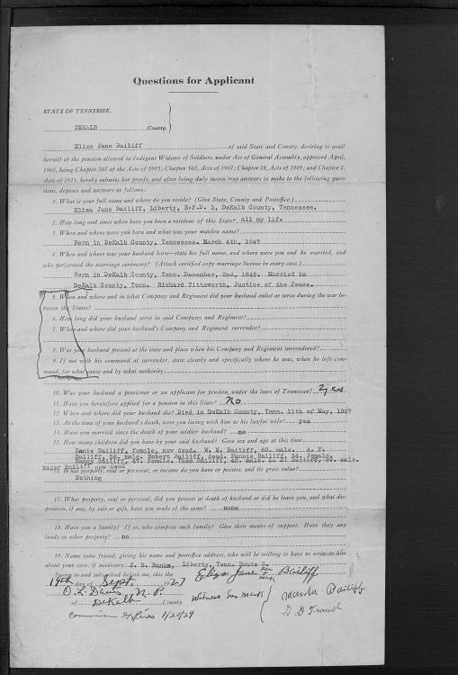 1927 Eliza Foster Bailiff widow pension