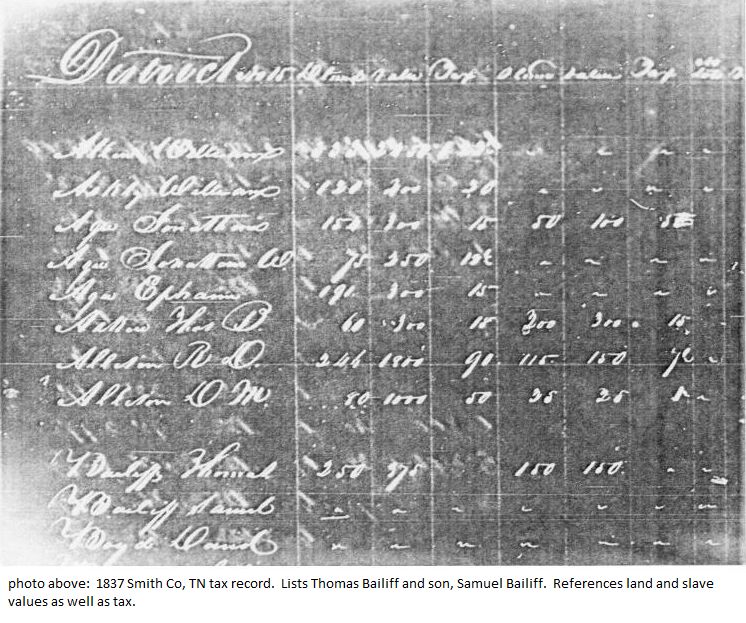 1837 Smith Co, TN tax record (Thomas & Samuel Bailiff)