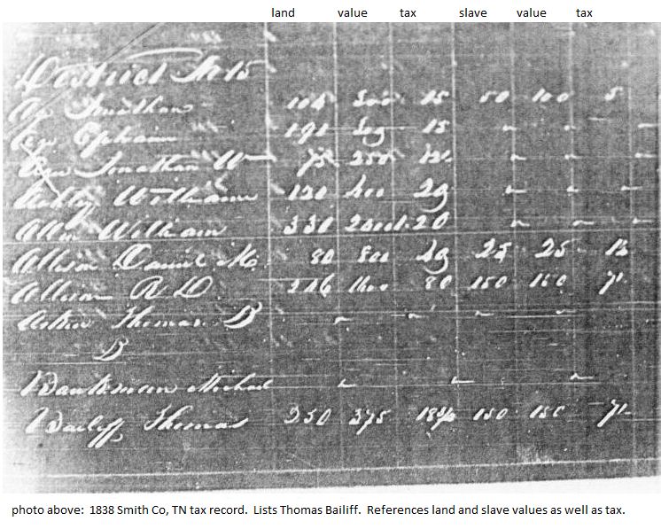 1838 Smith Co, TN tax record (Thomas Bailiff)