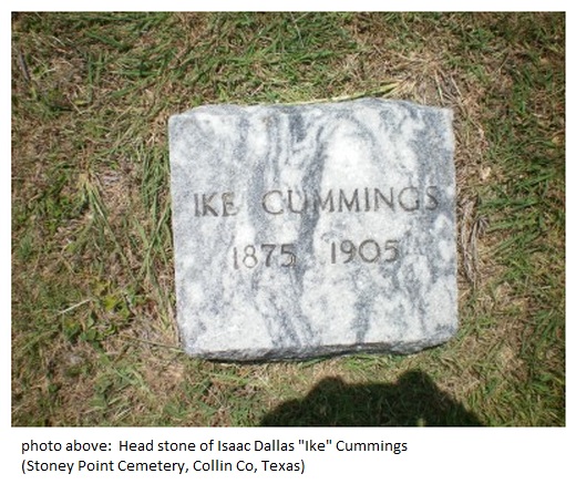 Headstone of Isaac Dallas "Ike" Cummings (Stoney Point Cemetery, Collin Co, Texas)