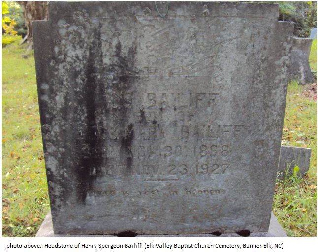 Headstone of Henry Spergeon Bailiff (Old Elk Valley Baptist Church Cemetery, Banner Elk, NC)