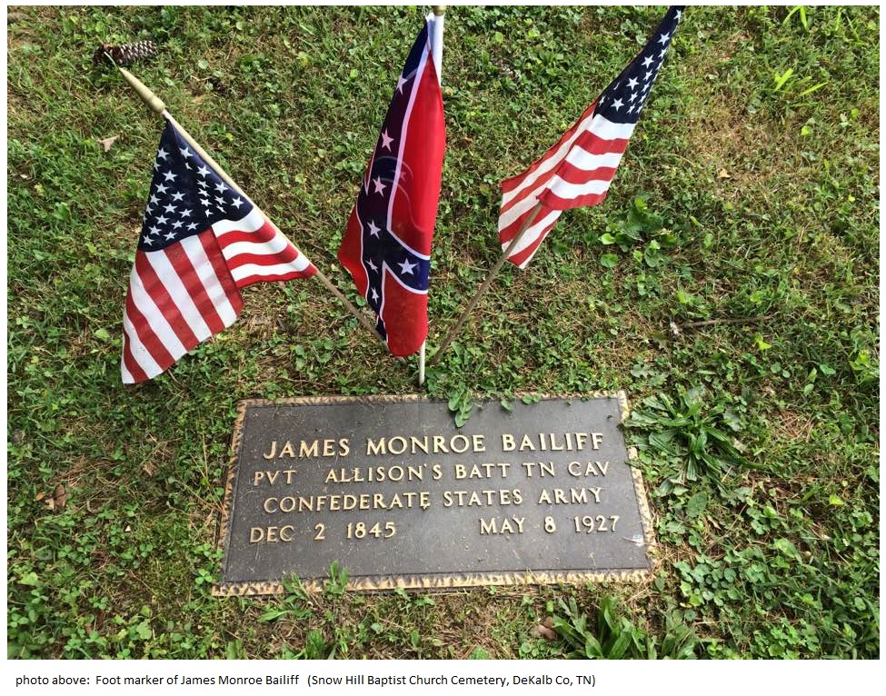 Foot marker of James Monroe Bailiff (Snow Hill Baptist Church Cemetery, DeKalb Co, TN)