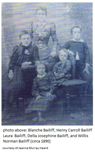 Blanche Bailiff, Henry Carroll Bailiff, Laura Bailiff, Della Josephine Bailiff, and Willis Norman Bailiff (circa 1890)