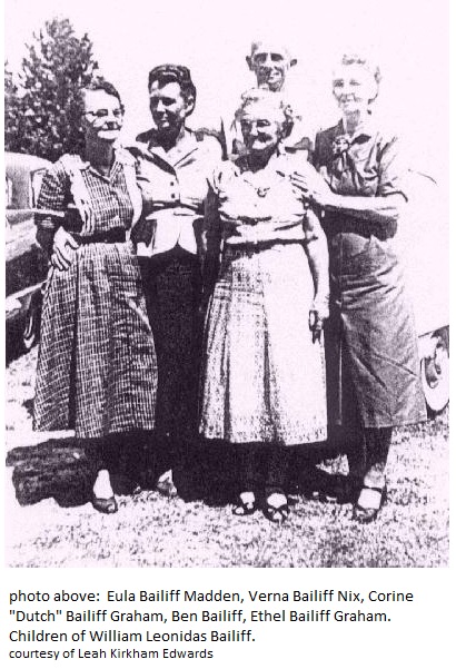 Eula Bailiff Madden, Verna Bailiff Nix, Corine "Dutch" Bailiff Graham, Ben Bailiff, Ethel Bailiff Graham.