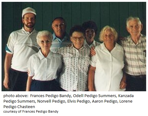Frances Pedigo Bandy, Odell Pedigo Summers, Kanzada Pedigo Summers, Norvell Pedigo, Elvis Pedigo, Aaron Pedigo, Lorene Pedigo Chasteen