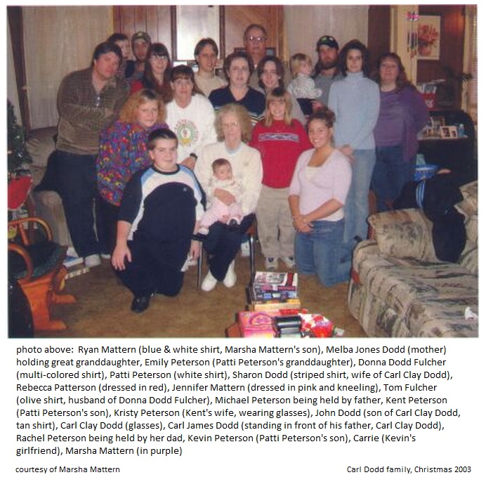 Ryan Mattern, Melba Jones Dodd, Emily Peterson, Donna Dodd Fulcher, Patti Peterson, Sharon Dodd, Rebecca Patterson, Jennifer Mattern, Tom Fulcher, Michael Peterson, Kent Peterson, Kristy Peterson, John Dodd, Carl Clay Dodd, Carl James Dodd, Rachel Peterson, Kevin Peterson, Carrie, Marsha Mattern