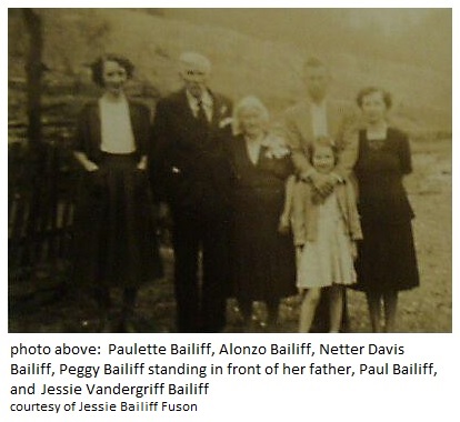 Paulette Bailiff, Alonzo Bailiff, Netter Davis Bailiff, Peggy Bailiff standing in front of her father, Paul Bailiff, and Jessie Vandergriff Bailiff