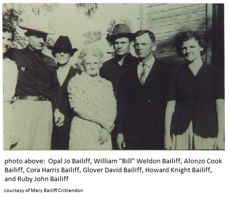Opal Jo Bailiff, William "Bill" Weldon Bailiff, Alonzo Cook Bailiff, Cora Harris Bailiff, Glover David Bailiff, Howard Knight Bailiff, Ruby John Bailiff