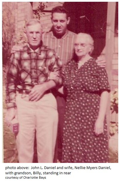 John L. Daniel and wife, Nellie Myers Daniel, with grandson, Billy, standing in rear