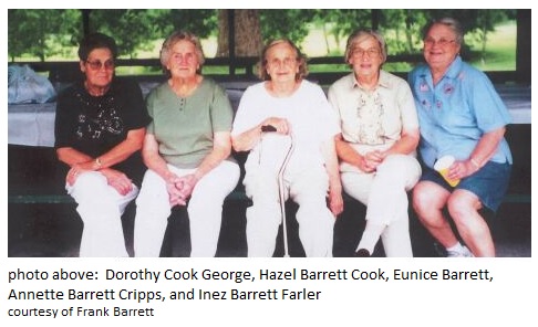 Dorothy Cook George, Hazel Barrett Cook, Eunice Barrett, Annette Barrett Cripps, and Inez Barrett Farler