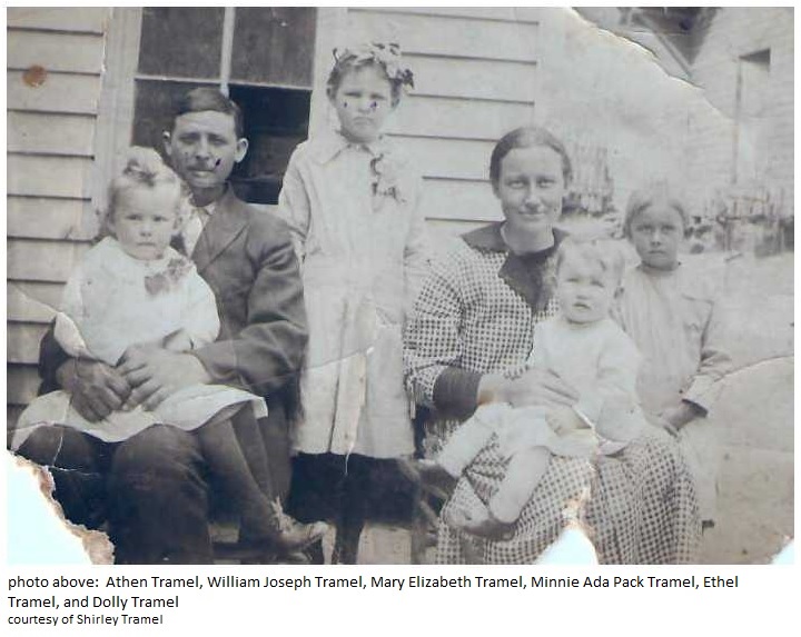 Athen Tramel, William Joseph Tramel, Mary Elizabeth Tramel, Minnie Ada Pack Tramel, Ethel Tramel, and Dolly Tramel