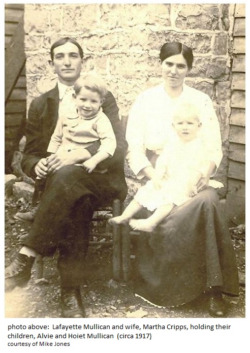 Lafayette Mullican and wife, Martha Cripps Mullican, holding their children, Alvie Mullican and Hoiet Mullican