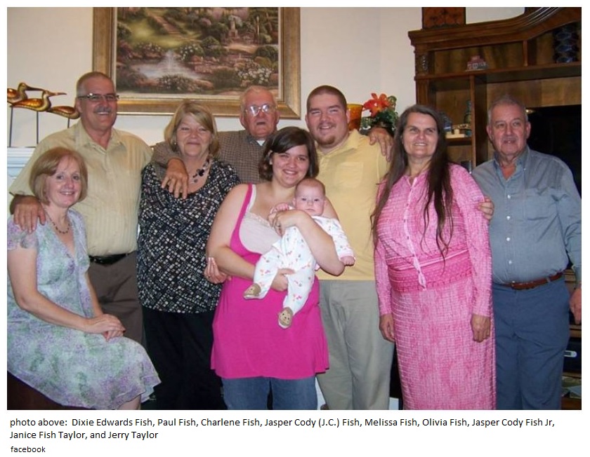 Dixie Edwards Fish, Paul Fish, Charlene Fish, Jasper Cody (J.C.) Fish, Melissa Fish, Olivia Fish, Jasper Cody Fish Jr, Janice Fish Taylor, and Jerry Taylor