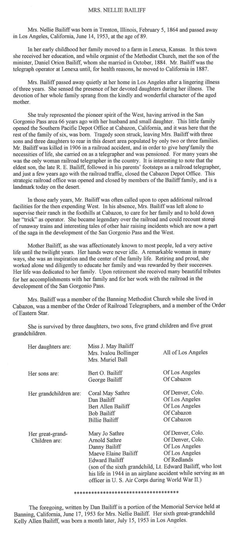 Nellie Bailiff Memorial