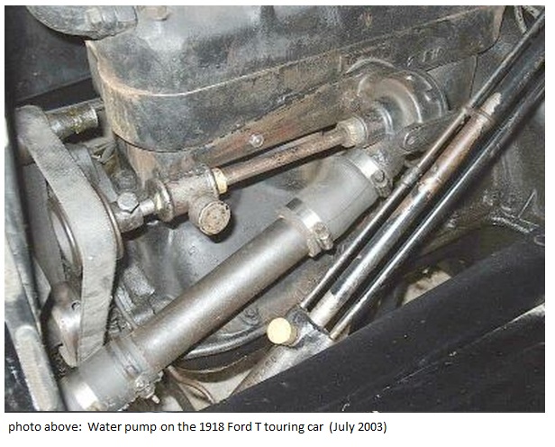 It took me an entire afternoon to remove the water pump. One of the bolts had been rounded off. Everything looked servicable, but worn. This old pump has been used a lot. The hole where the shaft goes through nearest the pulley is very worn. The pump operates well for the design and doesn't leak after repacking. Cleaned-up well.