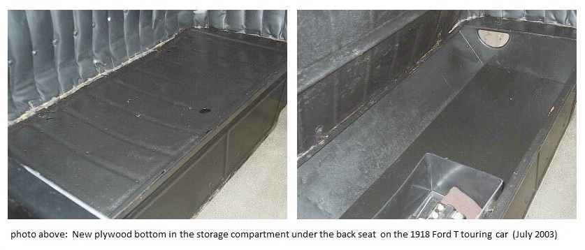 The storage compartment had a large rust hole in it. So, we put in a new plywood bottom and painted it. Looks good.