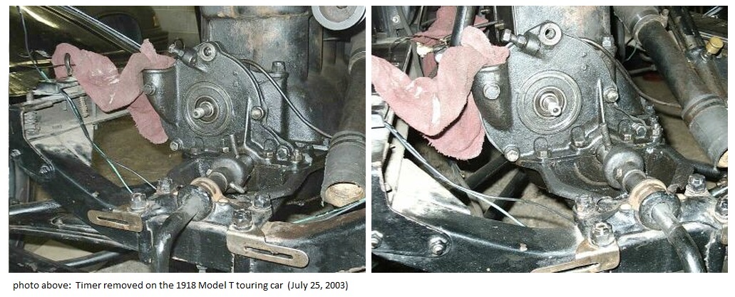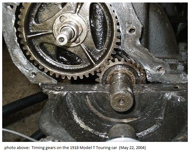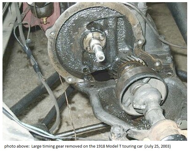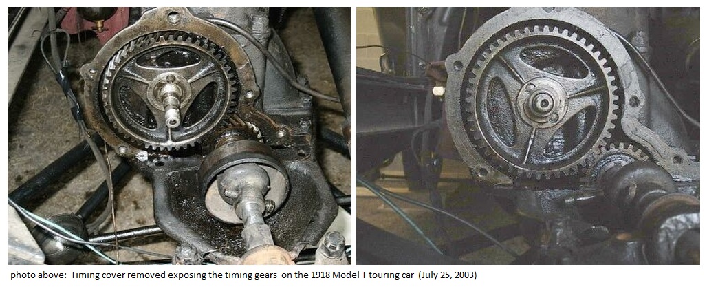 When re-installing the large timing gear, a "0" stamped on the large timing gear meshes with a "Ford 2" stamped on the smaller crank shaft gear to set the correct timing.