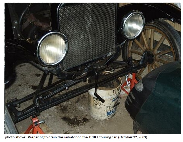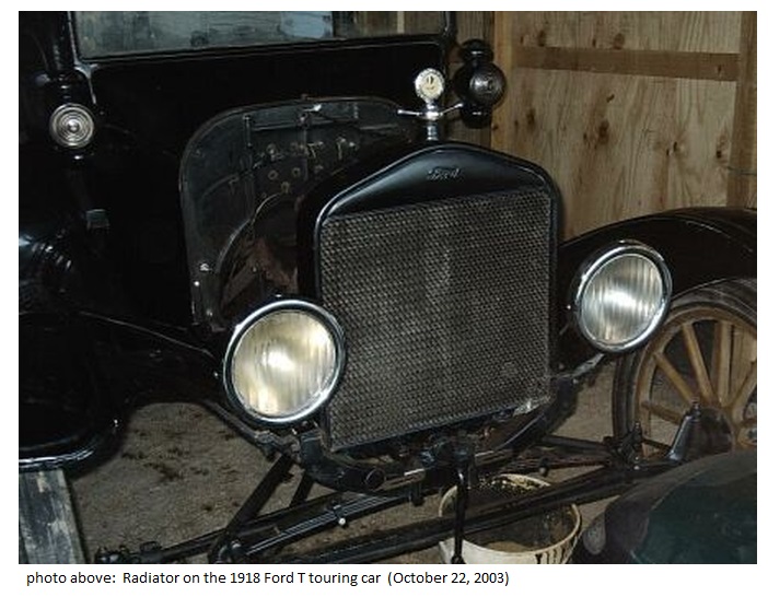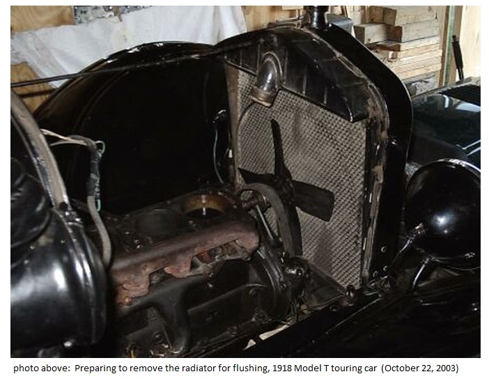 I read on the Model T Ford Club International's website (MTFCI) that toilet boil cleaner was sometimes used to clean radiators. I laid the radiator flat and poured in the cleaner, then added hot water and let it set for the afternoon. It did a good job.