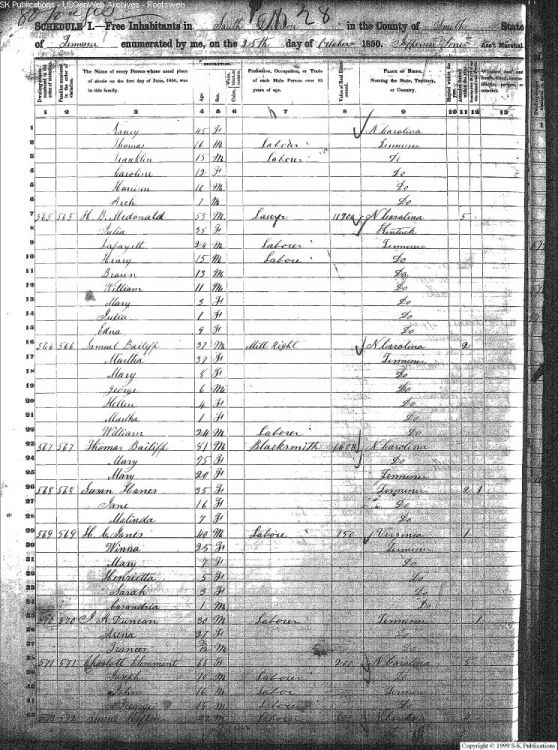 1850 Smith Co TN census