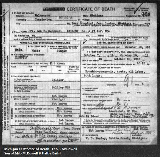Death Certificate of Leo F. McDowell