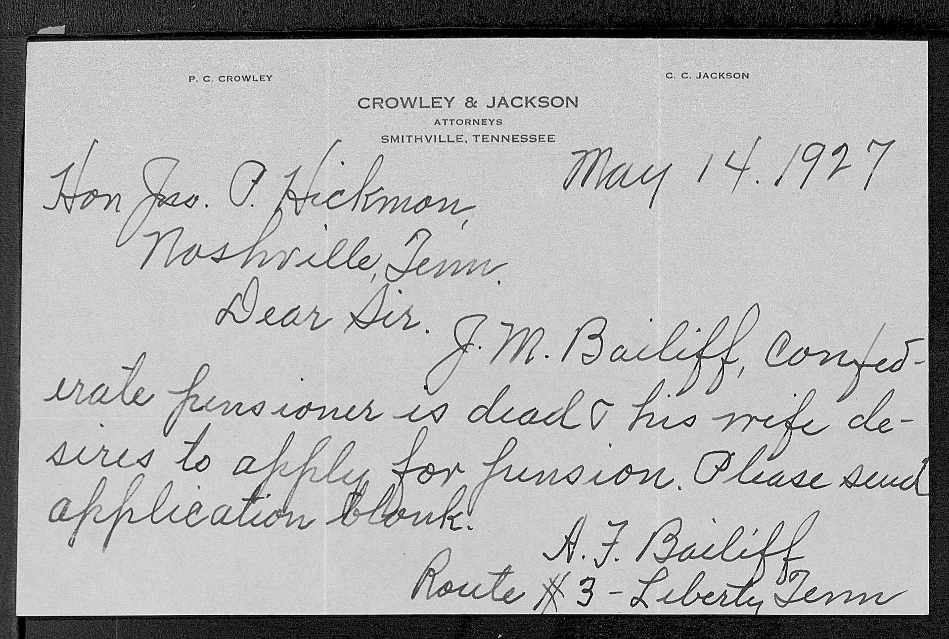 1903 James M Bailiff pension file