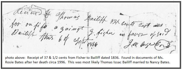 1836 receipt of Thomas Isaac Bailiff