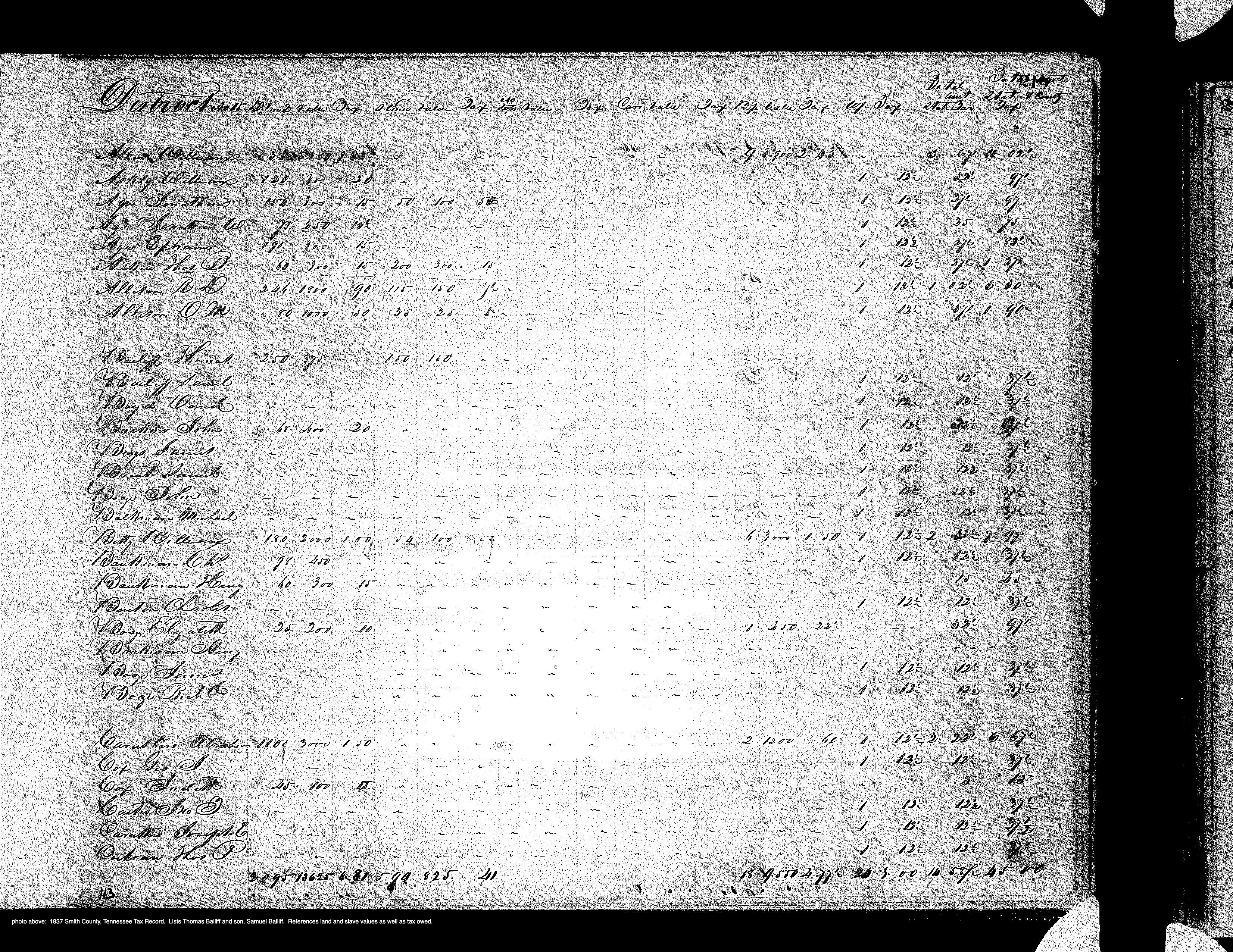 1837 Smith Co TN Tax Record (Thomas & Samuel Bailiff)