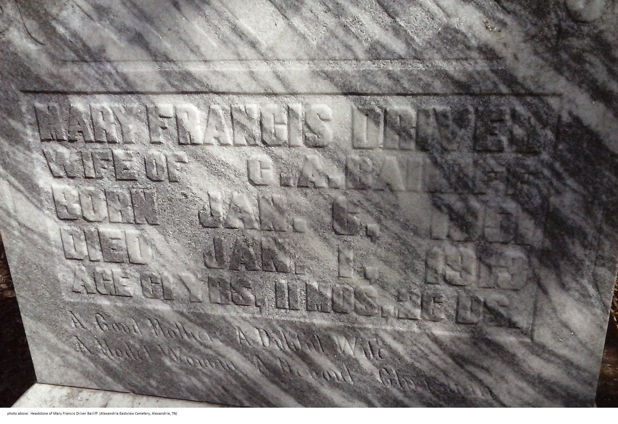 Headstone of Mary Frances Driver Bailiff (Alexandria Eastview Cemetery, DeKalb Co, TN)