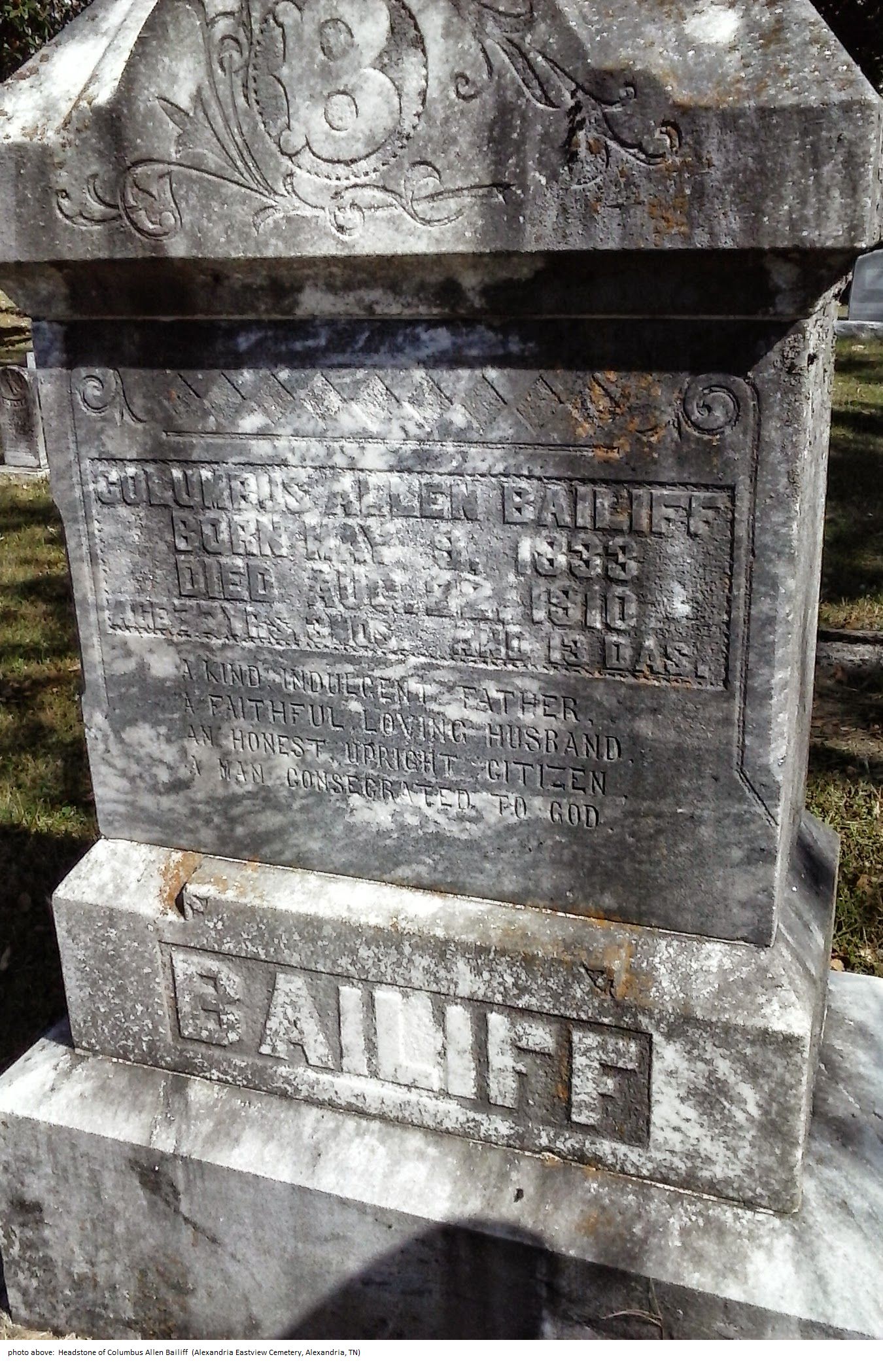 Headstone of Columbus Allen Bailiff (Alexandria Eastview Cemetery, DeKalb Co, TN)