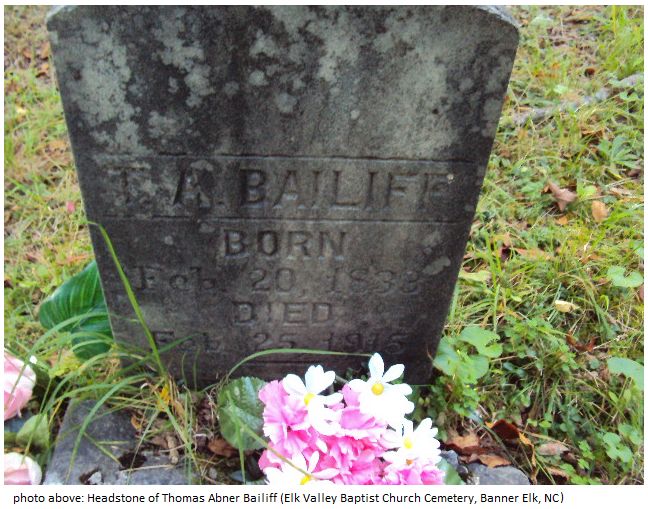 Headstone of Thomas Abner Bailiff (Old Elk Valley Baptist Church Cemetery, Banner Elk, NC)