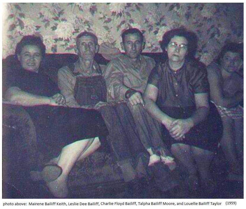 Mairene Bailiff Keith, Leslie Dee Bailiff, Charlie Bailiff, Talpha Bailiff Moore, and Louelle Bailiff Taylor