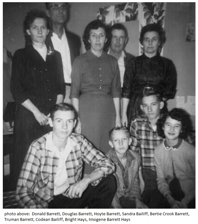 Donald Barrett, Douglas Barrett, Hoyte Barrett, Sandra Bailiff, Bertie Crook Barrett, Truman Barrett, Codean Barrett Bailiff, Bright Hays, and Imogene Barrett Hays
