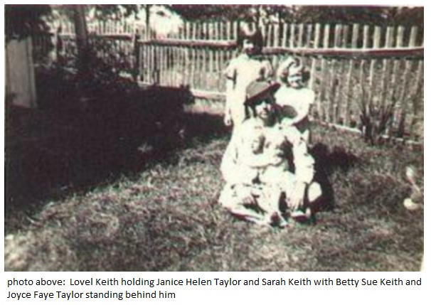 Lovel Keith holding Janice Helen Taylor and Sarah Keith with Betty Sue Keith and Joyce Faye Taylor standing behind him