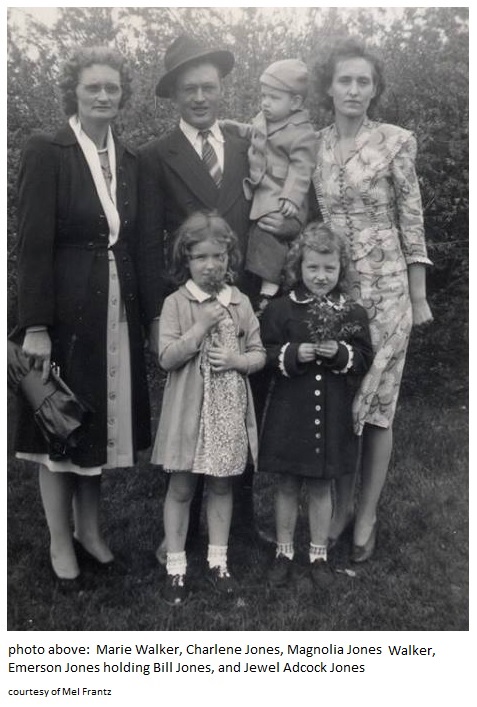 Marie Walker, Charlene Jones, Magnolia Jones Walker, Emerson Jones holding Bill Jones, Jewel Adcock Jones