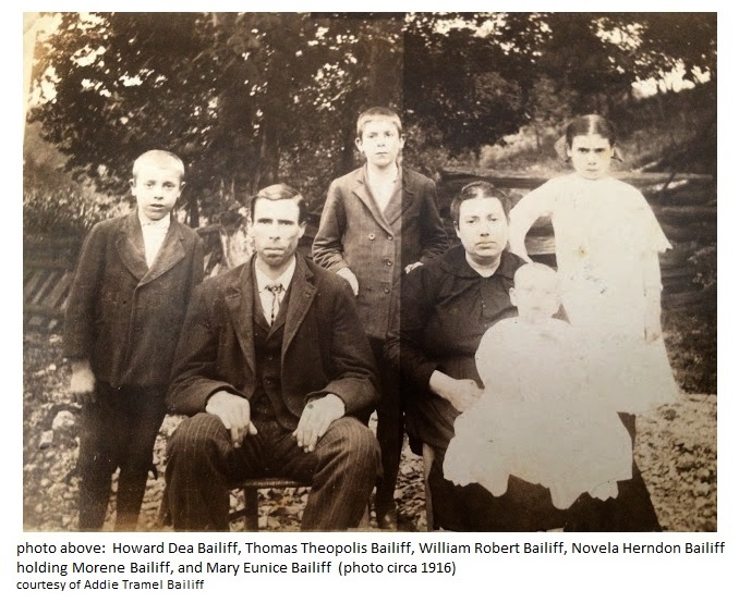 Howard Dea Bailiff, Thomas Theopolis Bailiff, William Robert Bailiff, Novela Herndon Bailiff holding Morene Bailiff, and Mary Eunice Bailiff