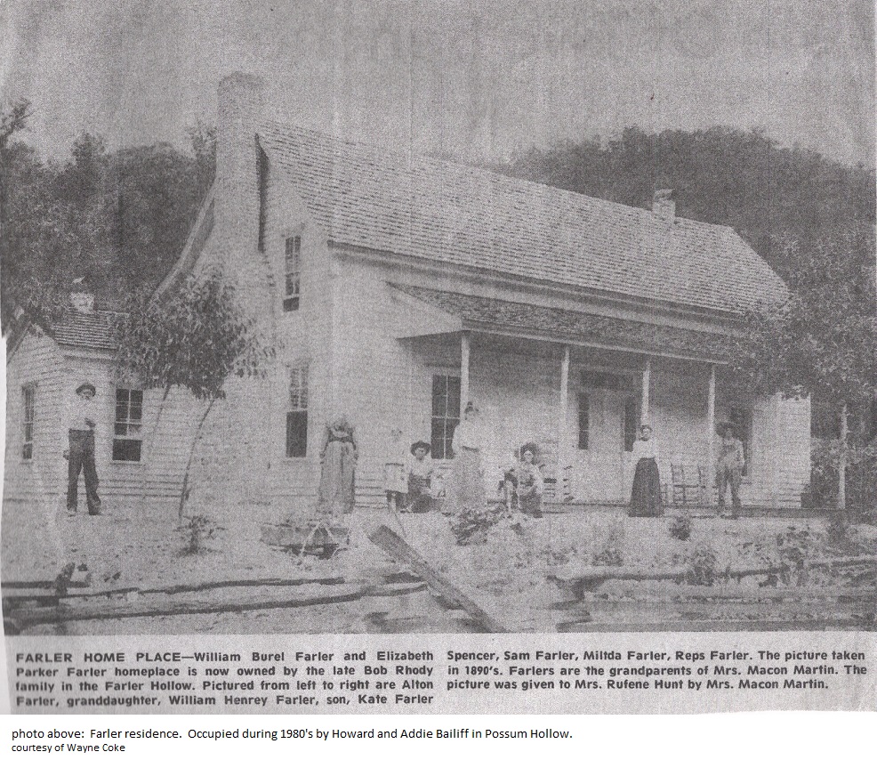 Farler residence in Possum Hollow. Occupied by Howard and Addie Bailiff during 1980's.