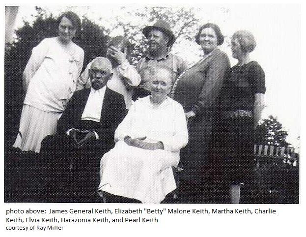 James General Keith, Elizabeth "Betty" Malone Keith, Martha Keith, Charlie Keith, Elvia Keith, Harazonia Keith, and Pearl Keith