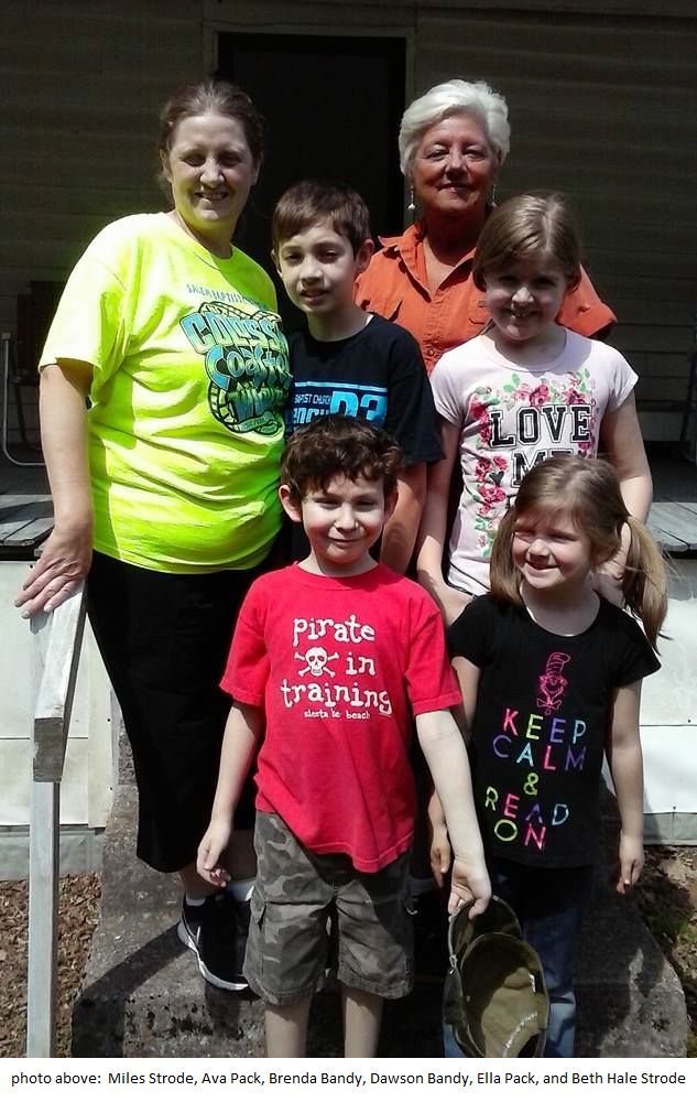 Miles Strode, Ava Pack, Brenda Bandy, Dawson Bandy, Ella Pack, and Beth Hale Strode (Possum Hollow, 2015)