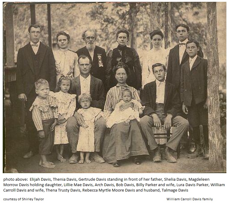 Elijah Davis, Thenia Davis, Gertrude Davis, Shelia Davis, Magdeleen Morrow Davis, Lillie Mae Davis, Arch Davis, Bob Davis, Billy Parker, Lura Davis Parker, William Carroll Davis, Thena Trusty Davis, Rebecca Myrtle Moore Davis, Talmage Davis