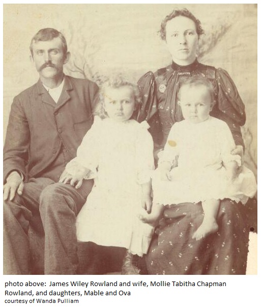 John Wiley Rowland and wife, Mollie Tabitha Chapman Rowland, with daughters, Mable and Ova