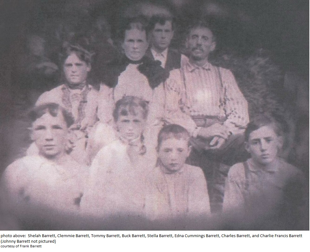 Shelah Barrett, Clemmie Barrett, Tommy Barrett, Buck Barrett, Stella Barrett, Edna Cummings Barrett, Charles Barrett, and Charlie Francis Barrett