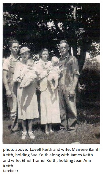 Lovell Keith and wife, Mairene Bailiff Keith, holding Sue Keith along with James Keith and wife, Ethel Tramel Keith, holding Jean Ann Keith