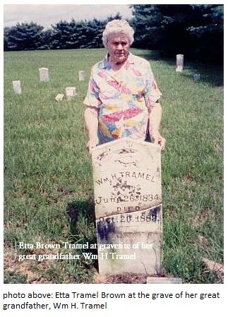 Etta Tramel Brown at grave of great grandfather, Wm H. Tramel