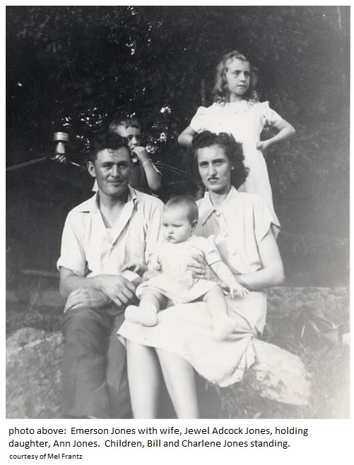 Emerson Jones with wife, Jewel Adcock Jones, holding daughter, Ann Jones. Children, Bill and Charlene Jones, standing.