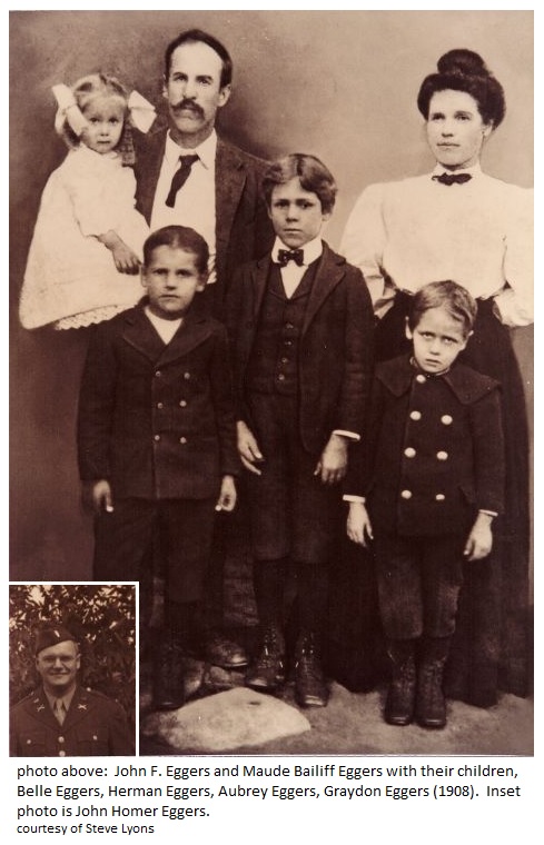 John F. Eggers, Maude Bailiff, Belle Eggers, Herman Eggers, Aubrey Eggers, Graydon Eggers, and John Homer Eggers