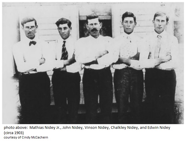 Mathias Nidey Jr., John Nidey, Vinson Nidey, Chalkley Nidey, and Edwin Nidey